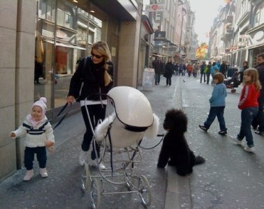 Derzeit werden wir ohnehin dermassen mit Herbstfarben verwöhnt, dass eine solch pointierte Abwechslung erst recht gern gesehen wird. Was auf dem Bild vielleicht nicht zu erkennen ist: Das Kleinkind trug auch noch ein wenig Rosa, zusammen mit dem schwarz/weiss Look. Das Trio hätte direkt einem Modejournal von der Titel-Seite gehüpft sein können...
